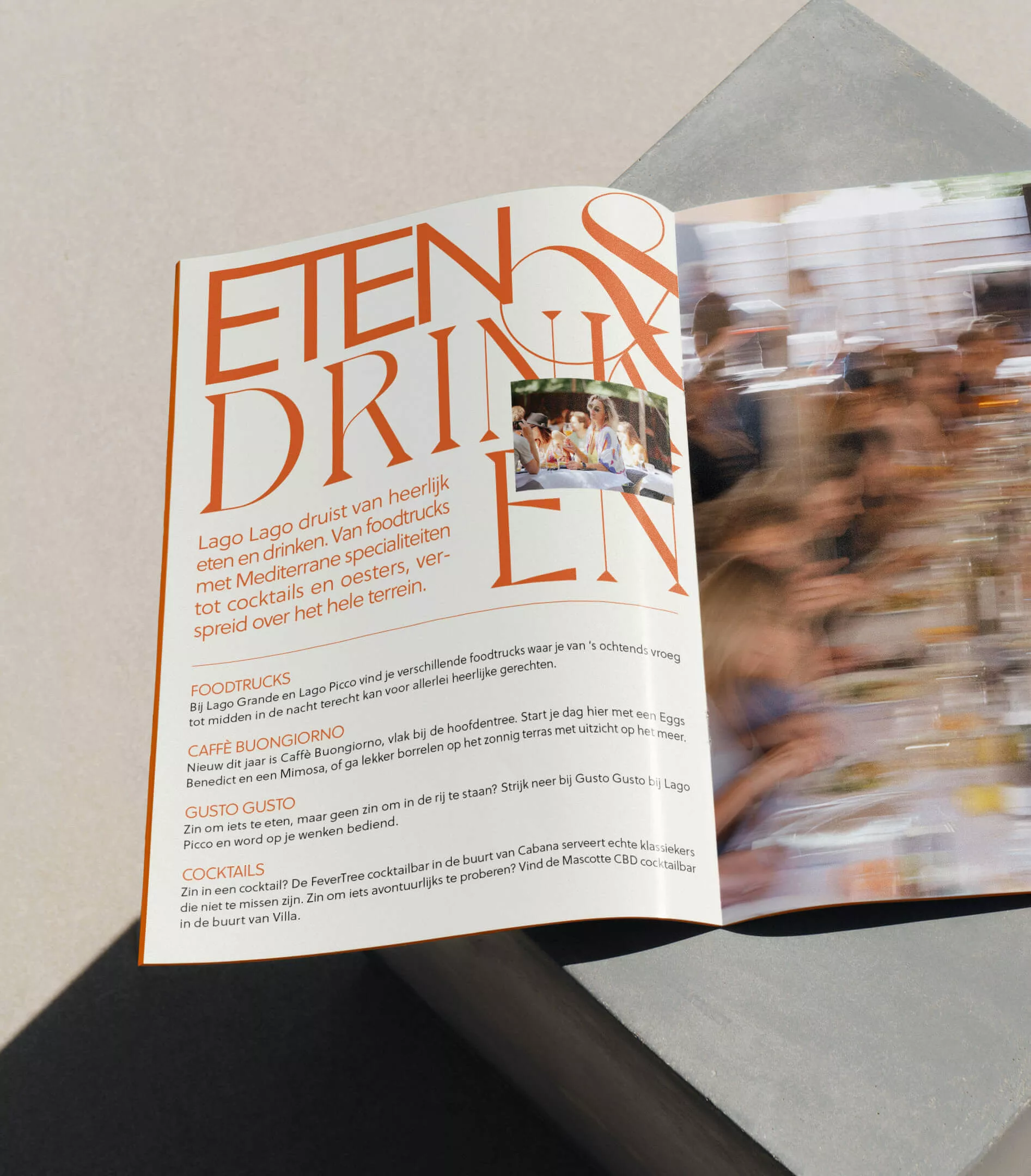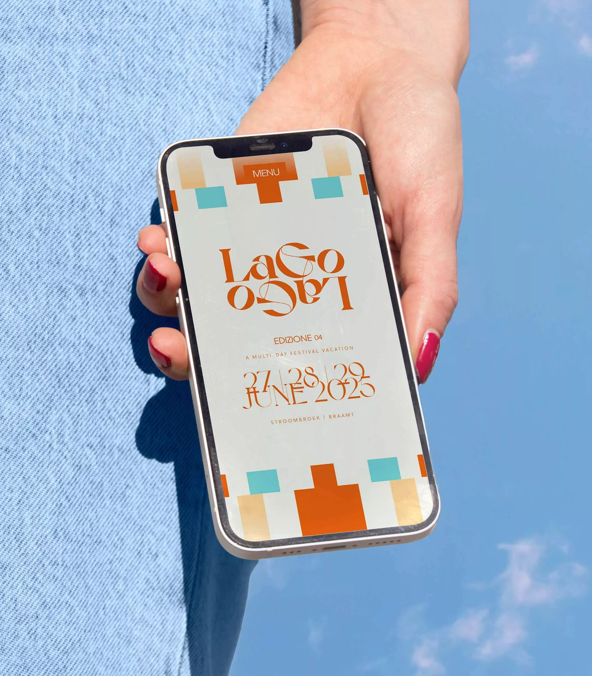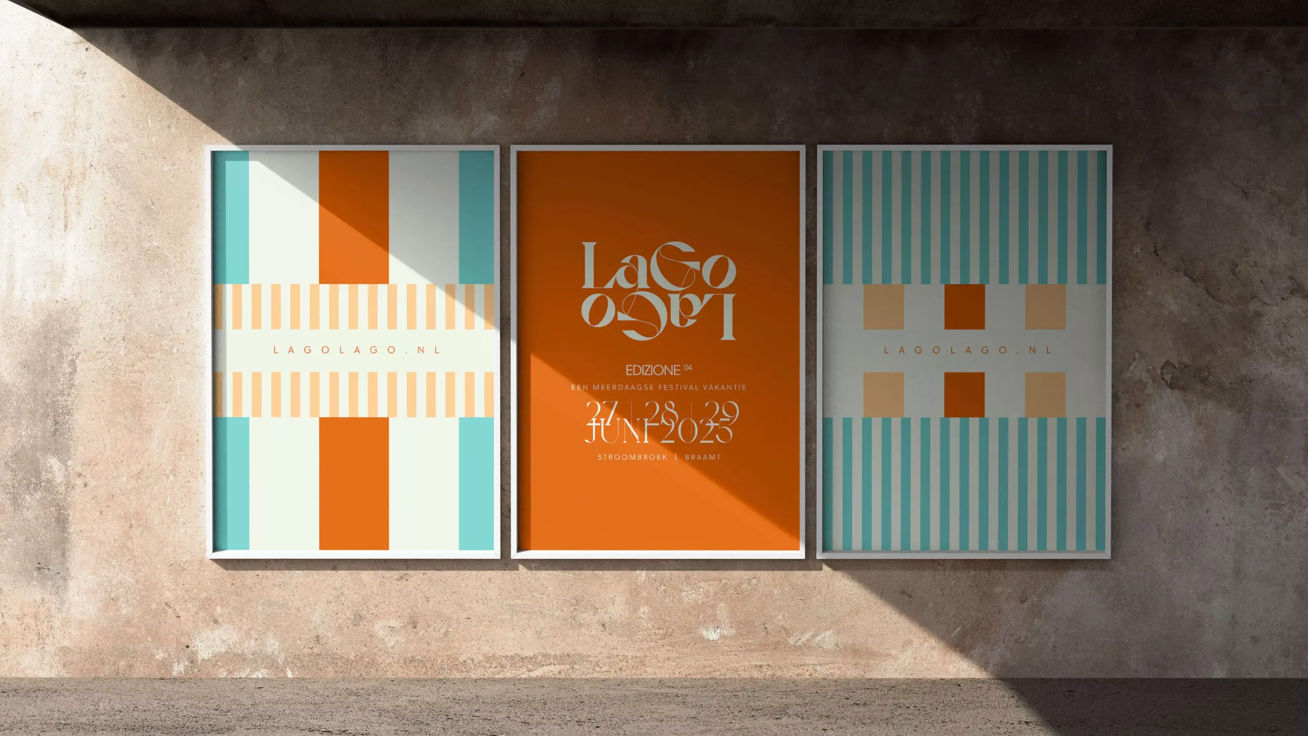The strategy — Entering the next stage in a multi-year evolution: how to redefine the brand’s essence? Which parts are fixed, which parts are editable? For starters, the logo has become an anchor and a pillar. Besides the logo the mirroring graphics that symbolize a waterline are also hardwired in Lago Lago’s DNA. But the colors change every year. For the fourth edition we made a return to the calmness of an earlier ‘sand’ primary color. And by exploring an informal Italian tone of voice, another defining step was made.